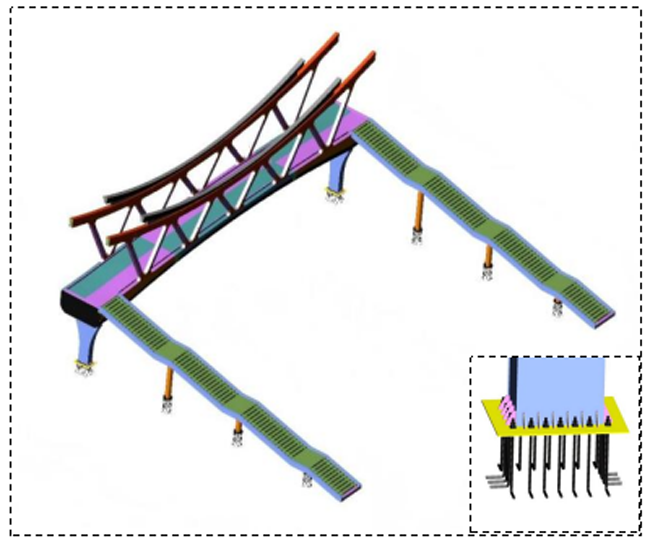 印象濟(jì)南·泉世界作為濟(jì)南西部重要的文旅商業(yè)綜合體,長(zhǎng)期面臨人車交織的通行壓力與安全隱患。本次建設(shè)的天橋全長(zhǎng)47.3米,橋面寬5米,以“雄鷹展翅”為造型,將橋體結(jié)構(gòu)、材質(zhì)、色彩進(jìn)行巧妙融合,實(shí)現(xiàn)人車分流、保障通行安全,成為串聯(lián)不同風(fēng)貌街區(qū)的景觀紐帶。該項(xiàng)目直面商圈出行痛點(diǎn),選址于人流密集區(qū)域,南北雙側(cè)配備梯道與垂直電梯,全面貫徹全齡友好、無障礙通行理念,全力打造一座讓市民安心、讓城市暖心的“連心橋”。